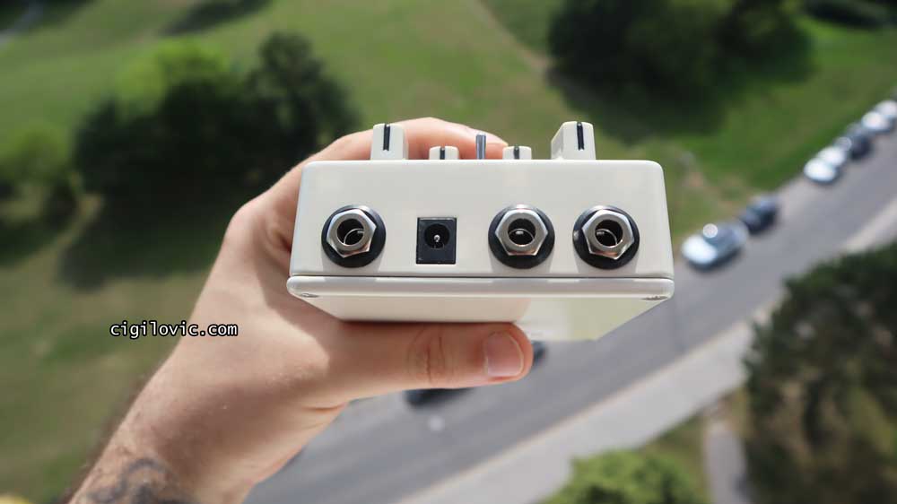 As mentioned, on the top side, there is a standard input and output as well as a unique, remote jack to control the boost section of the pedal remotely via a switching system.