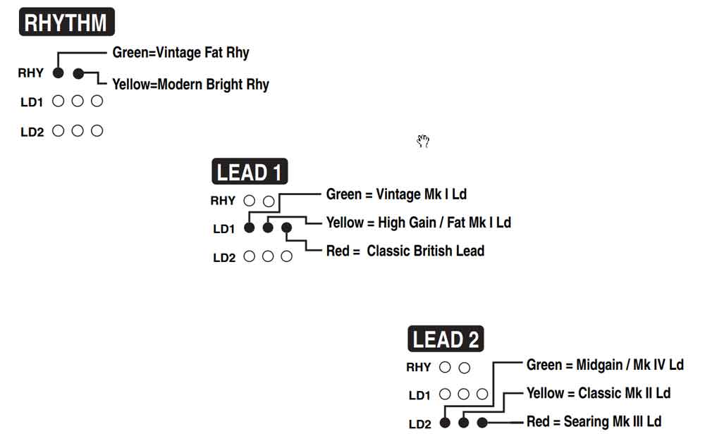 As mentioned above, Lead 1 modes were pre-tone-control gain controls. However, with Lead 2 modes, it is quite the opposite. Lead 2 modes feature a post-tone-control gain circuit. This design approach was first done by the Mesa Boogie company in their Mark II series. Following this groundbreaking approach in amp design, Mesa Boogie also featured this in Mark II-B, II-C+, III and IV series amplifiers. Generally speaking, Lead 2 modes offer more articulate and focused lead sounds and can be easily described as not so forgiving. All these modes cut through the mix, stay focused much longer and allow players to be heard.