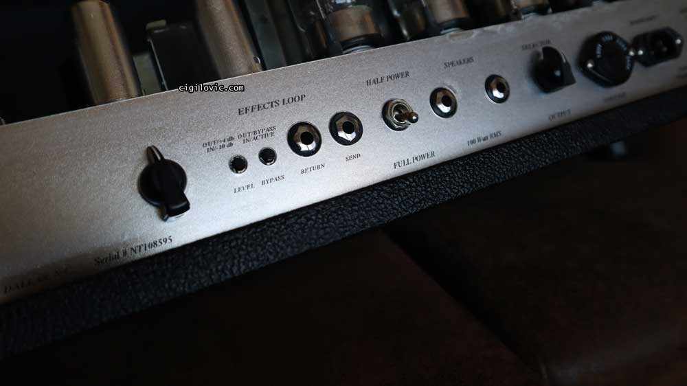 As far as I can see, mine has four 6550 power tubes along with four 12ax7 preamp tubes. The one listed on the Splawn website doesn’t mention any tubes, also it features a 4-button footswitch instead of a 3-button one that I have. Also, mine doesn’t have a Drop B+ Variac Switch.