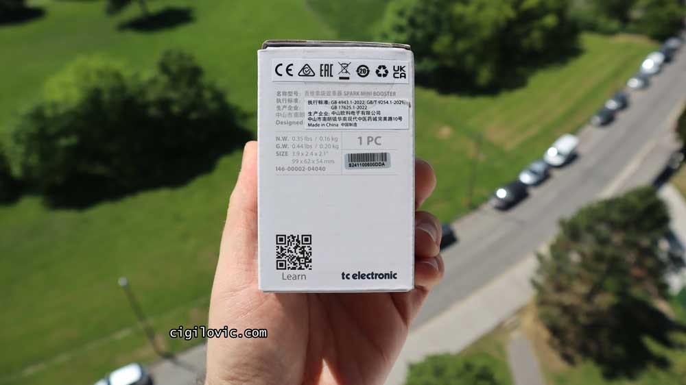 At the bottom of the box, there are tons of details in possibly Chinese and other Asian languages, as the pedal is made in China. There’s also the serial number information shown below.