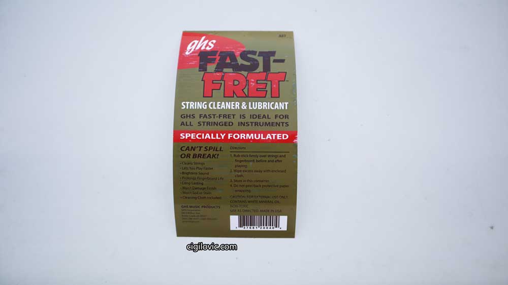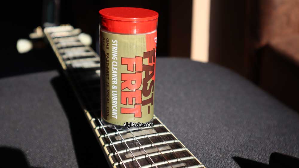 GHS Fast Fret is described as a “string cleaner” and “lubricant” for guitar and bass. It also offers the combined benefit of cleaning and maintaining strings and the fretboard! One of the claims is also about making strings sound bright and new, as well as prolonging their life.
