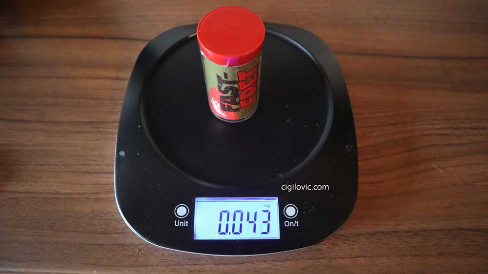 TLDR: I already threw my Fast Fret in the rubbish after I disassembled and measured the actual content. As you can see below, the whole package weighs around 43g. Then I removed that extremely hard sponge-like part from the applicator and weighed it as well. It weighs around 8g. To be honest, it looks and feels like it contains a lot of oil.